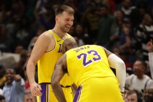 今日NBA常规赛,湖人主场110-97击退尼克斯。本场比赛东契奇25中11,三分16中5,罚球10中8砍下35分8篮板4助攻2抢断。詹姆斯因伤缺席了本场比赛。