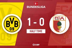 体育资讯3月14日讯 北京时间3月14日22:30,德甲第26轮,多特蒙德在伊杜纳信号公园球场迎战奥格斯堡。上半场,阿德耶米接拜尔传中抢点破门,随后里贝罗错失单刀良机,拜尔射门中柱。半场战罢,多特蒙德暂时以1-0领先奥格斯堡。