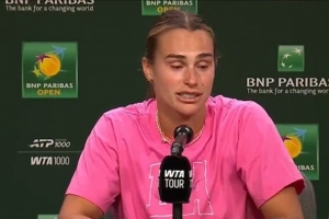 体育资讯3月16日讯 WTA1000印第安维尔斯决赛,萨巴伦卡2-1逆转莱巴金娜夺冠,萨巴伦卡出席了赛后发布会。