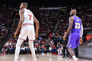 谈到湖人球星詹姆斯本场多次完成精彩暴扣,杜兰特说:“对此我都不再感到惊讶了。他拥有惊人的运动天赋,他是划时代的运动员,他在意比赛,热爱这项运动。他很悉心照料身体,这就是他能做到的事。自从他还是一个孩子起,他就为此打造好了基础。