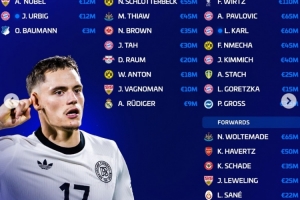 体育资讯3月20日讯 近日,德转网站更新了新一期德国国家队球员身价,其中维尔茨以1.1亿欧身价高居首位,沃尔特马德、帕夫洛维奇以6500万欧位居次席。