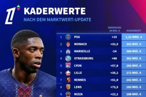 法甲球队身价排名: