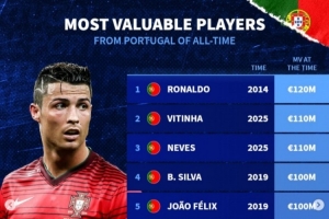 德转葡萄牙球员历史身价榜: