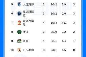 体育资讯04月04日讯 今日下午中超结束两场较量,辽宁2-1击败国安,海牛1-0战胜河南,最新积分榜如图。