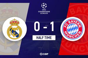 第41分钟,维尼修斯传球失误,格纳布里直塞,迪亚斯冷静推射得手,皇马0-1拜仁。↓