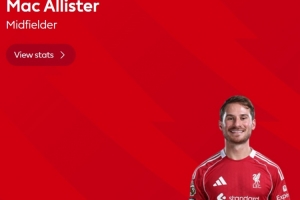 本场比赛麦卡利斯特在补时阶段贡献读秒绝杀,赛后他也当选英超官方球迷票选全场最佳球员。